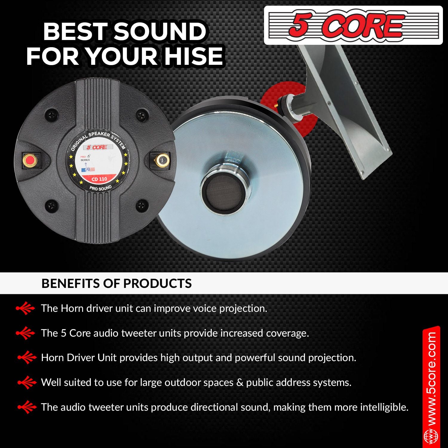 5 CORE Horn Speaker Tweeter Compression Driver 1.75 Inch Titanium Voice Coil 600W Max 8 Ohm 300 Watts RMS Loud 105dB 18 Oz 110mm Magnet- Screw