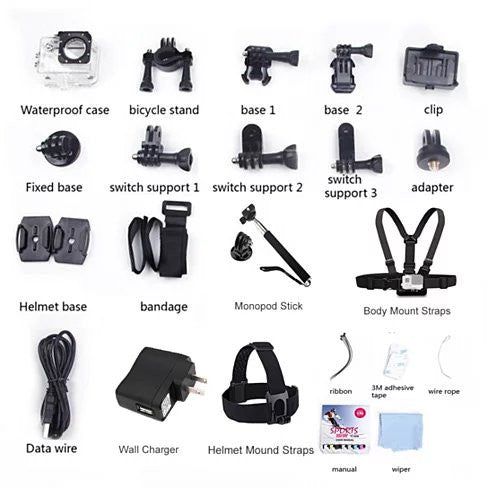 All PRO Action Sports Camera With 1080P HD And WiFi 18 PCS Of Accessory Included