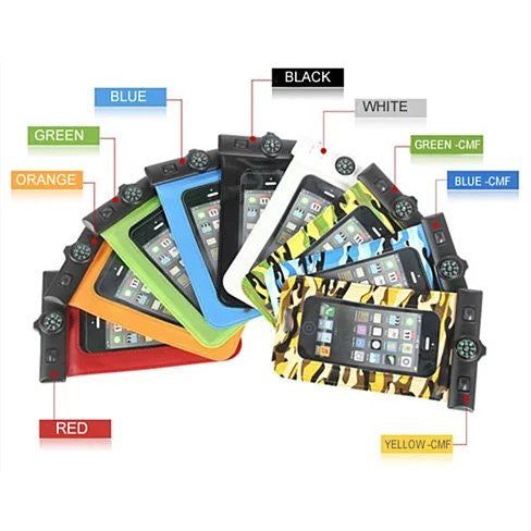 It will allow you to answer the phone and use the touch screen and take pictures even underwater with its special camera window on the back you can use front and back facing the camera to take pictures. Comes in 3 camouflage colors and 7 solid colors.