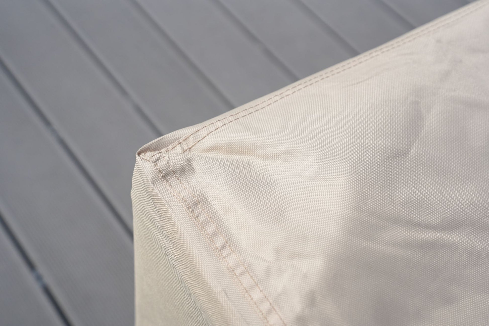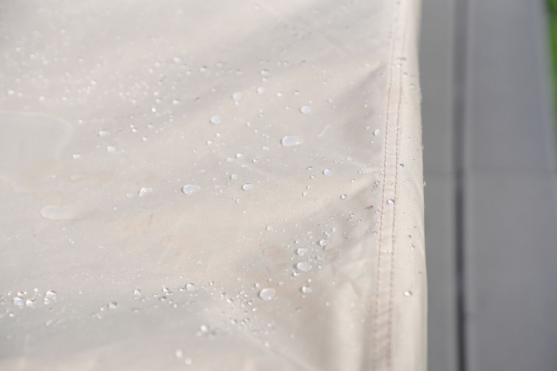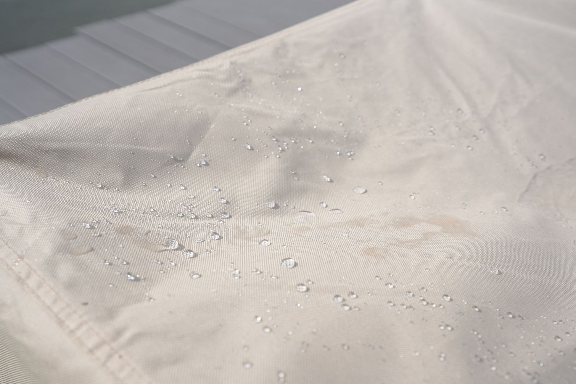 1, Waterproof polyester Fabric System features an elegant fabric top, a water-repellent and resistant PVC undercoating, and a protective dark splash guard skirt.