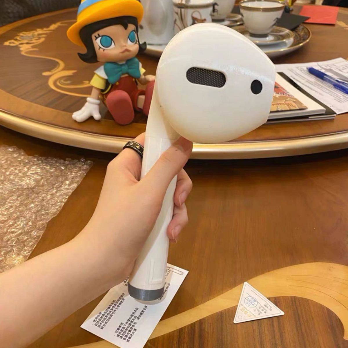 Take selfies with this Bluetooth speaker and MP3 Player while you enjoy the music and have a blast! This giant-size ear-pod is fun to have; interestingly it's almost 50 times bigger than the original AirPods we normally enjoy; and they have this impressive and striking Magna sound quality that is just out of this world!