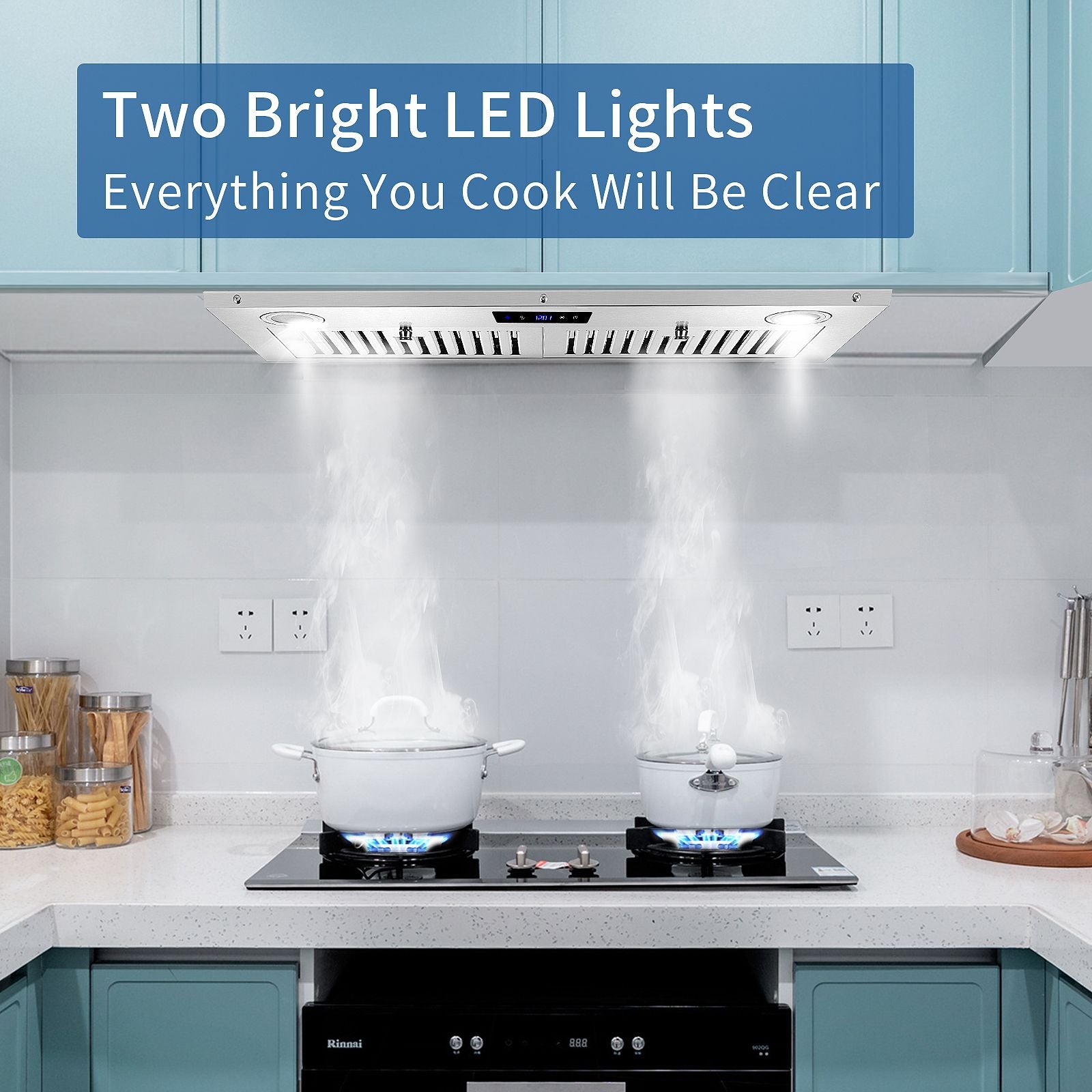 [Two Bright Cooking Lights]With bright cooking lights on the both side of stove hood vent, whether you cook on the left or right, the light can be seen. Our stainless steel range hood can always be your choice.