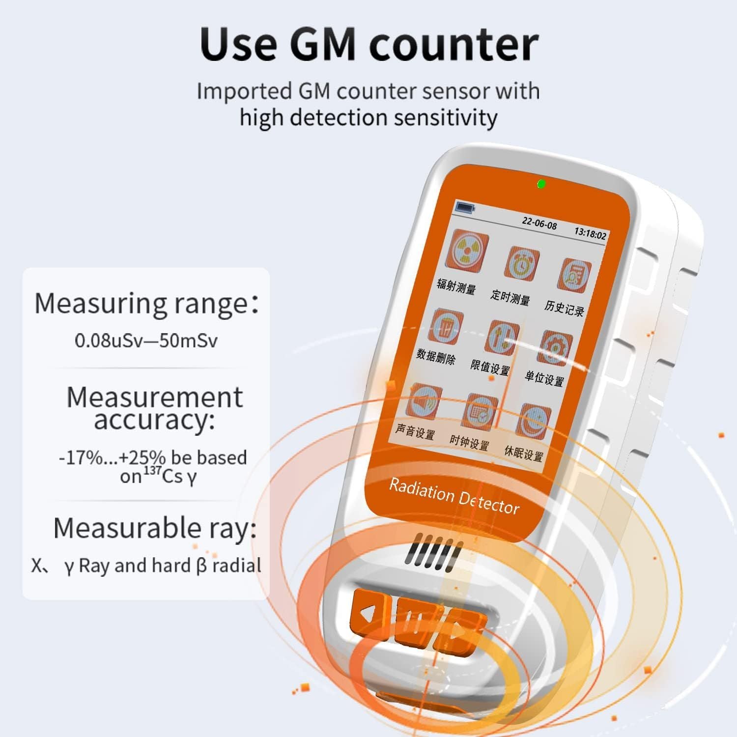 Measuring range: 0.08uSv-50mSv