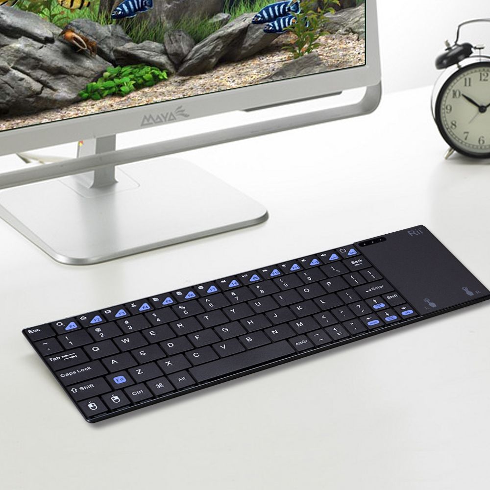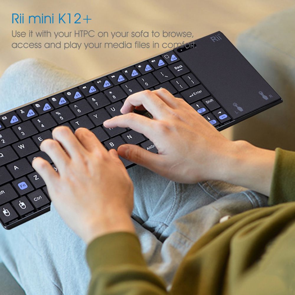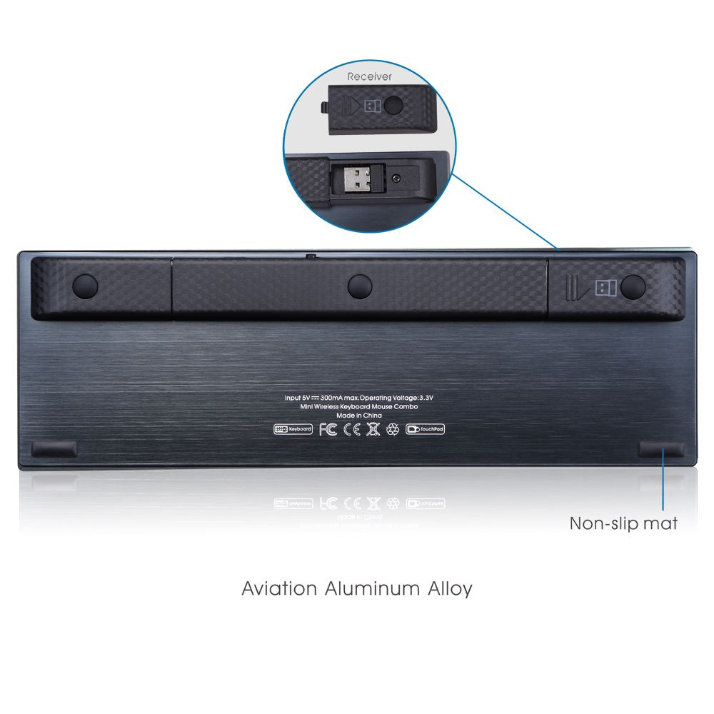 Rii K12+ Mini Wireless Keyboard with Large Touchpad Mouse&Qwerty Keypad, Stainless Steel Portable Wireless Keyboard with USB Receiver for MacBook/iPad/Tablet/PC/Laptop/Smart TV/Raspberry Pi - Black