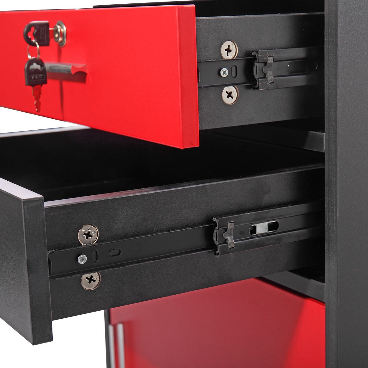 [Ample Storage Space]:Equipped with 2 slide-out drawers (one is lockable); 1 spacious cabinetwith a hingeddoor; and 2dryerholders; the trolley can keep your working tools safe and organized.