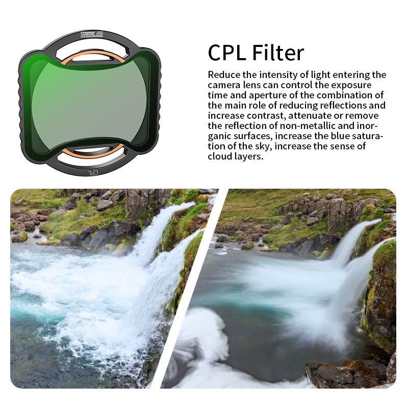 Enhance Color Vibrancy: Add a pop of color to your aerial footage with the included CPL filter. By reducing glare and unwanted reflections from surfaces like water and glass, this filter enriches colors and enhances clarity, ensuring your shots stand out with vivid detail.