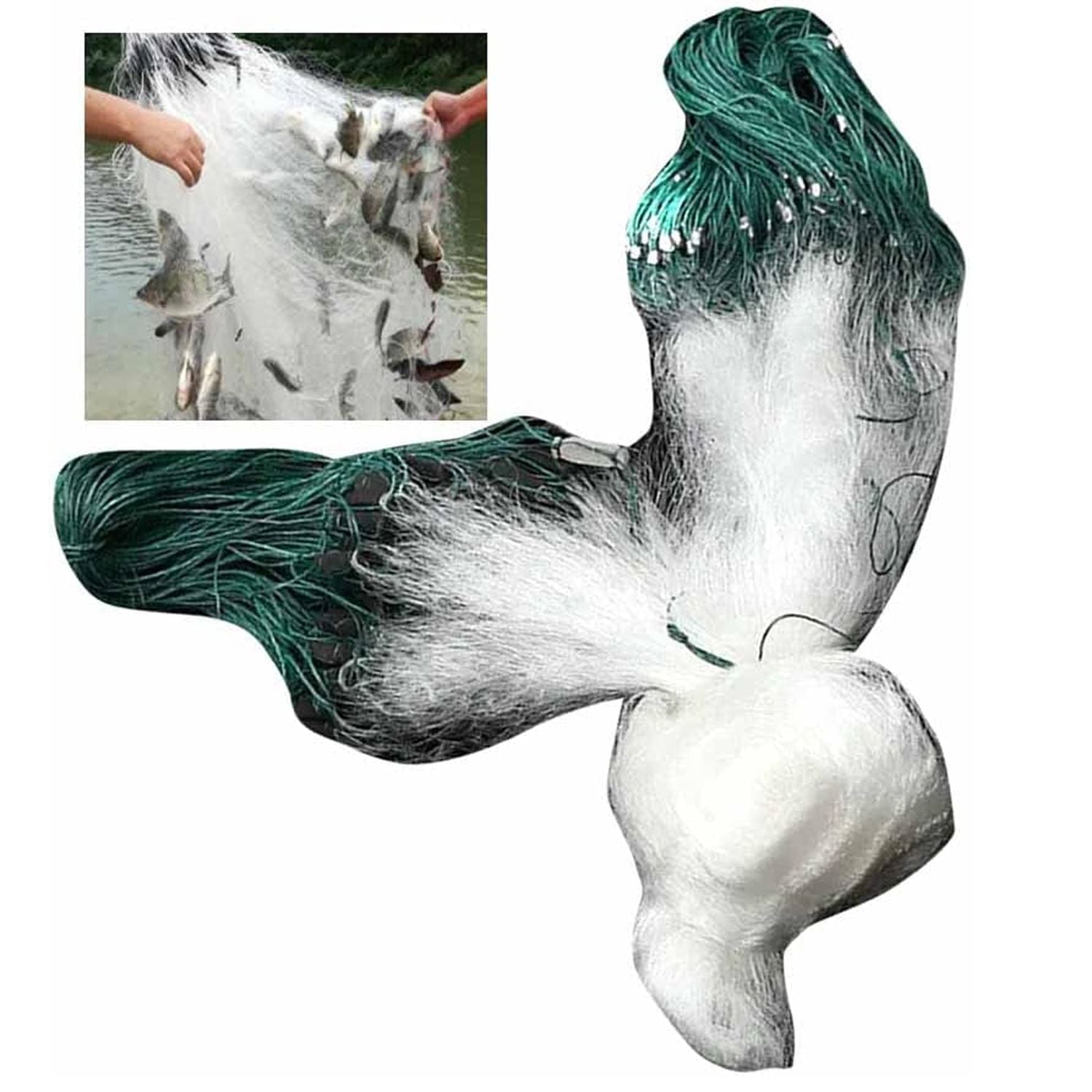 US Folding Fish Sticky Net Three Layer Mesh Nylon Floating Fishing Net Automatically Trap Catch Stick More Fish Easily Portable Folded Reuse Durable Size 25x1.5m or 984x59inch for River Lake