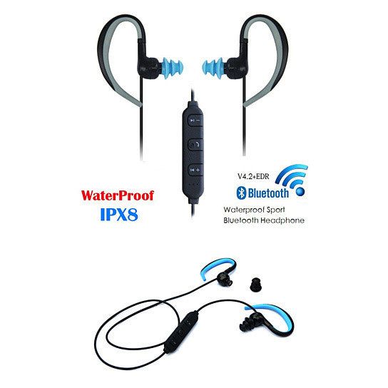 Waterproof Bluetooth headphones now you can swim and play in the rain while keeping your phone or device safely away at a distance with this WaterProof light Weight headphones. It also comes with swimmers earplug to prevent water entering the ear.